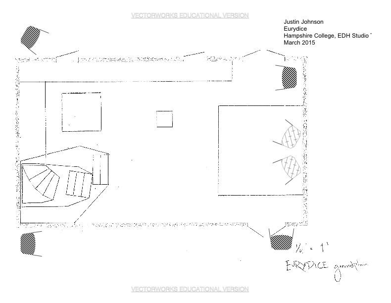 This show was one of the few design-driven productions I can think of at Hampshire. As such, its is one of the most (if not the most) ambitious projects I’ve ever worked on. I can say without a doubt that Eurydice is also the most schizophrenic sound design I’ve created. It has everything in it from Marvin Gaye to techno dance breaks to live voice distortion.